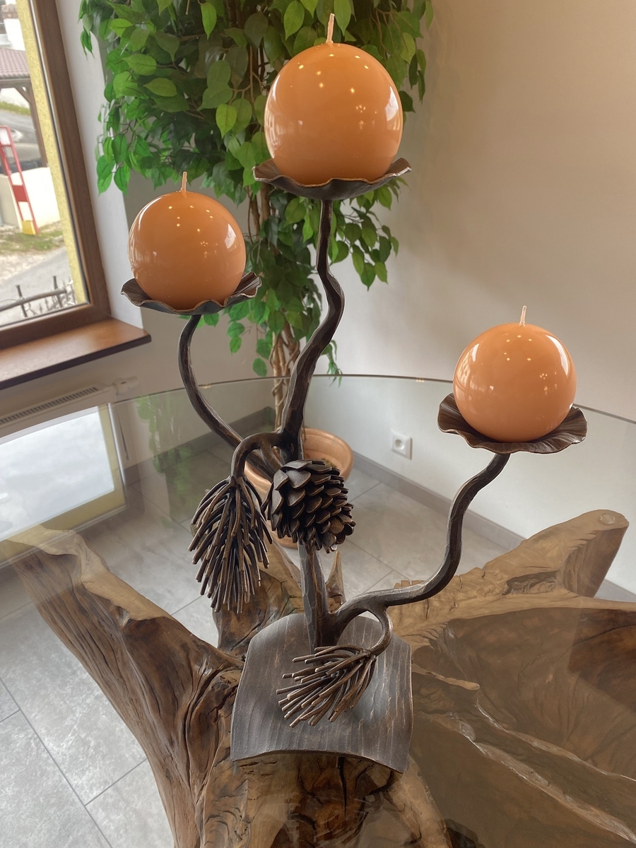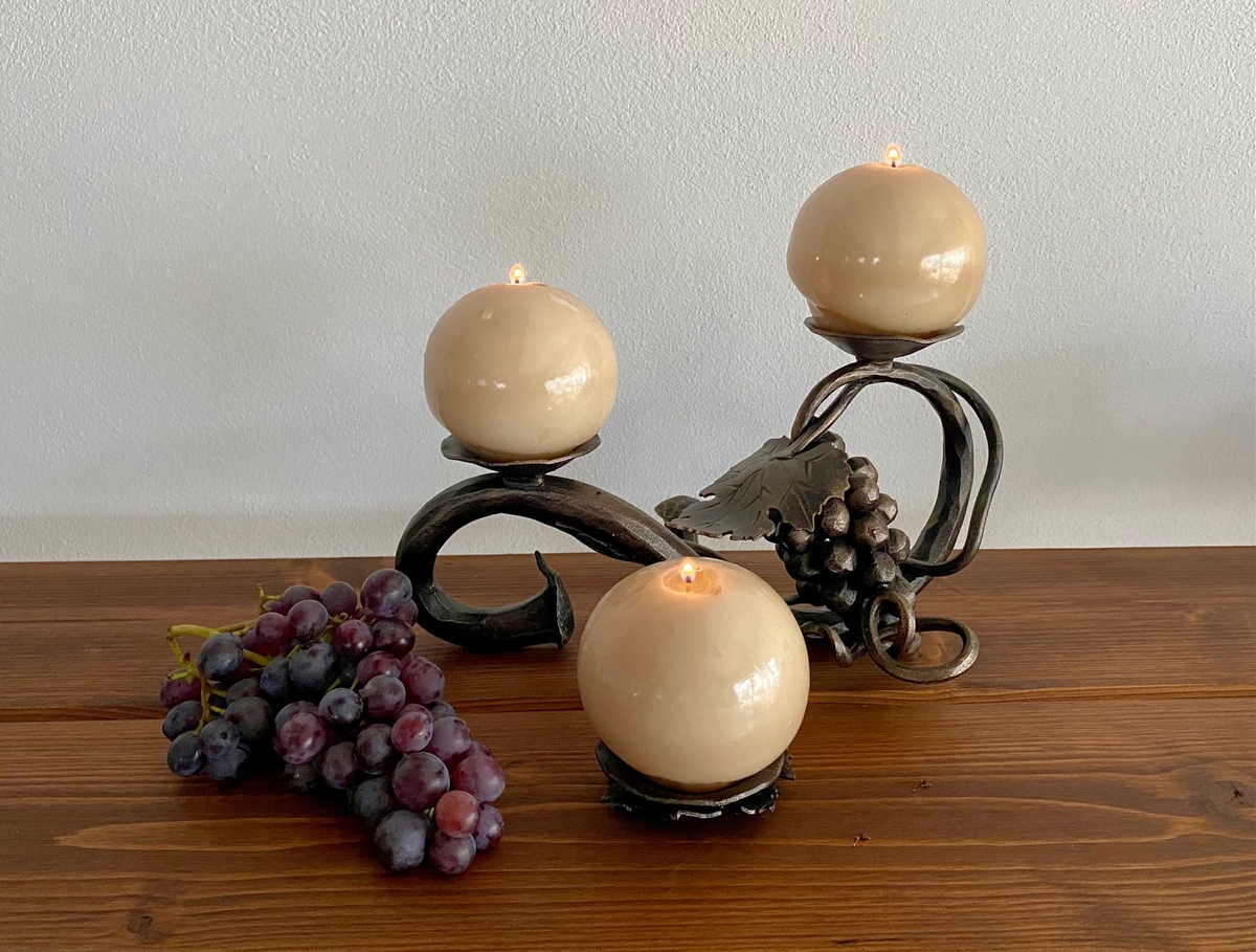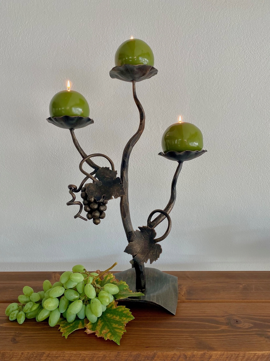 Každý svietnik vzniká pod rukami skúsených kováčov, ktorí do kovu pretavujú krásu prírody. Listy duba symbolizujú silu a stabilitu, vinič prináša hojnosť a radosť zo života, a vetvičky sosny zasa pokoj a večnú zeleň.
