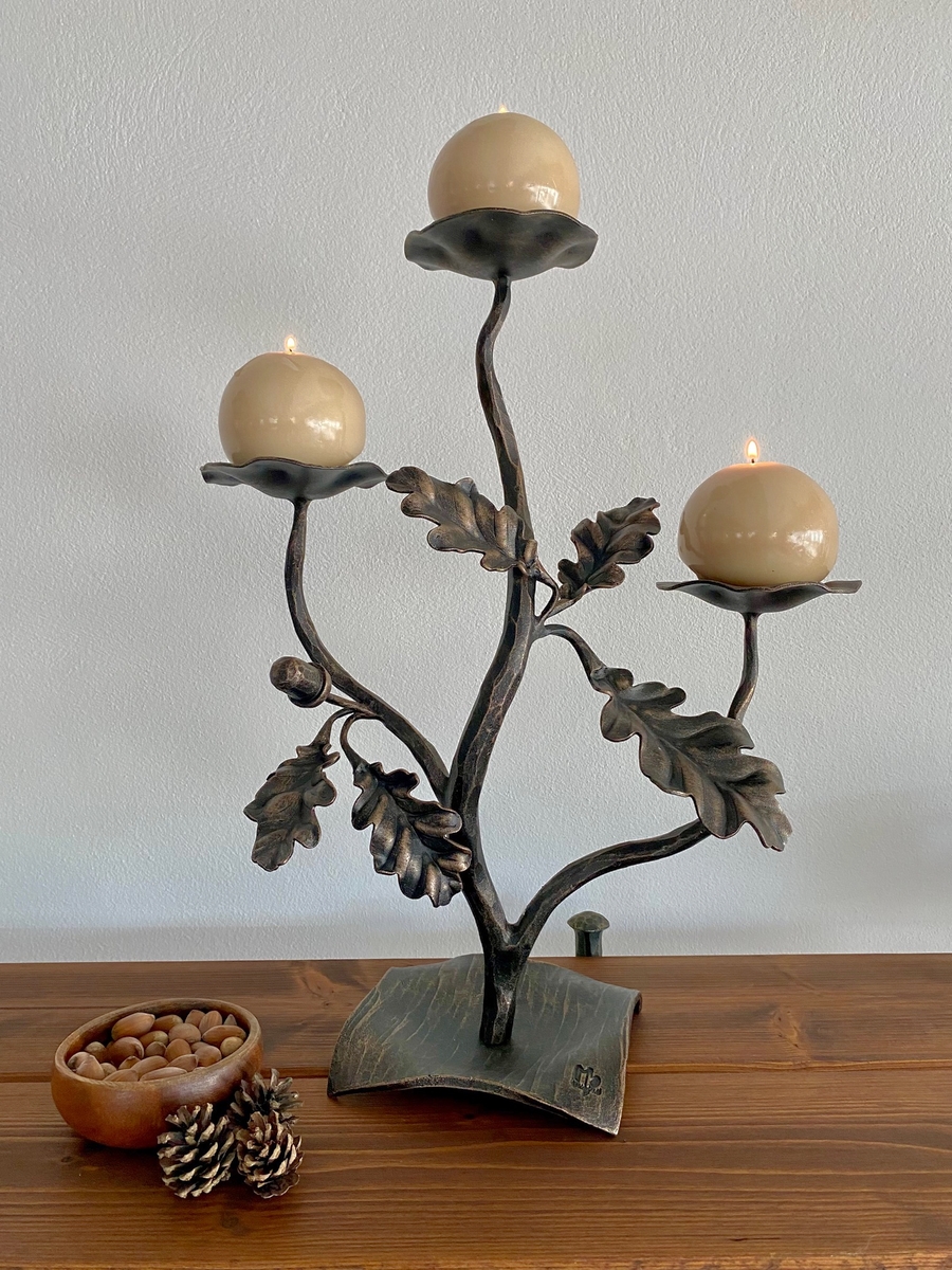 Jeseň je obdobím, keď príroda hrá najfarebnejšou paletou a každý kút domova si zaslúži dotyk tepla a útulnosti. Predstavujeme vám kolekciu ručne kovaných svietnikov, inšpirovanú samotnou prírodou – motívy duba, viniča a sosny ožívajú v jedinečných kúskoch, ktoré očaria svojím remeselným spracovaním aj symbolikou.