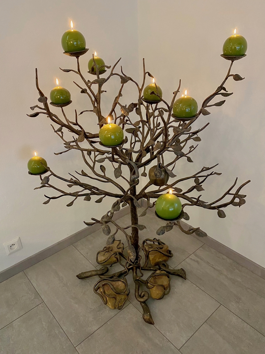 Každý svietnik vzniká pod rukami skúsených kováčov, ktorí do kovu pretavujú krásu prírody. Listy duba symbolizujú silu a stabilitu, vinič prináša hojnosť a radosť zo života, a vetvičky sosny zasa pokoj a večnú zeleň.