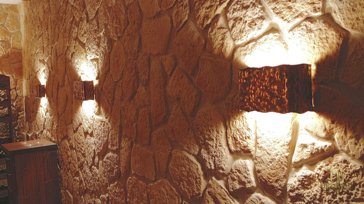Medená tepaná lampa na stenu - výnimočná interiérová lampa vyhotovená pre vínnu pivnicu - rustikálna lampa