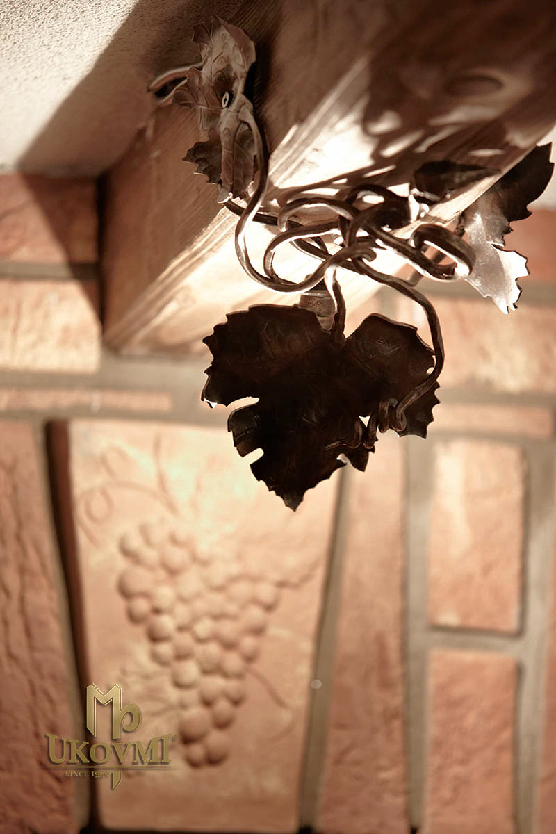 Kovaná lampa - list viniča - interiérové svietidlo ručne vykované do vinnej pivnice - exkluzívne svietidlo